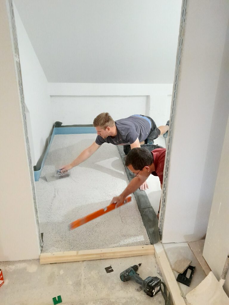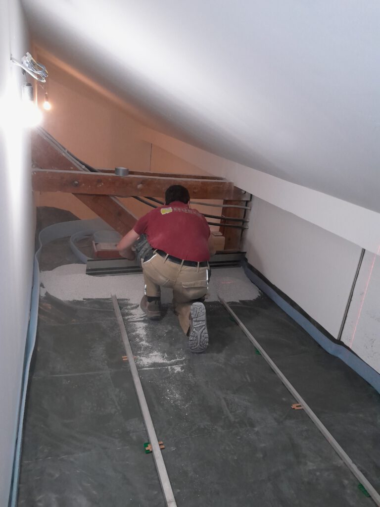 dann wird die Schüttdämmung verteilt…