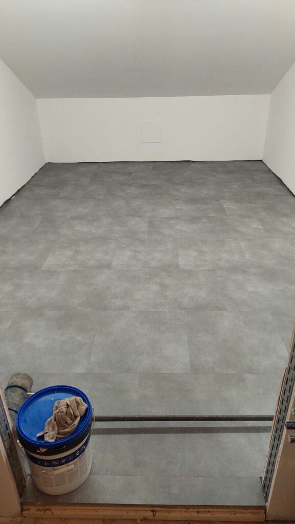 Im hinteren Abstellraum ist der Boden komplett fertig, bis auf die Sockelleisten.