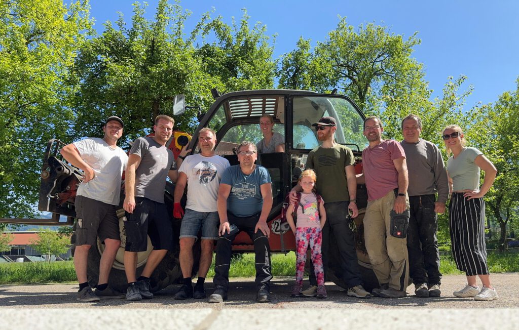Unsere Vorstandschaft im farblich abgestimmten Arbeitsdress bei vollem Einsatz