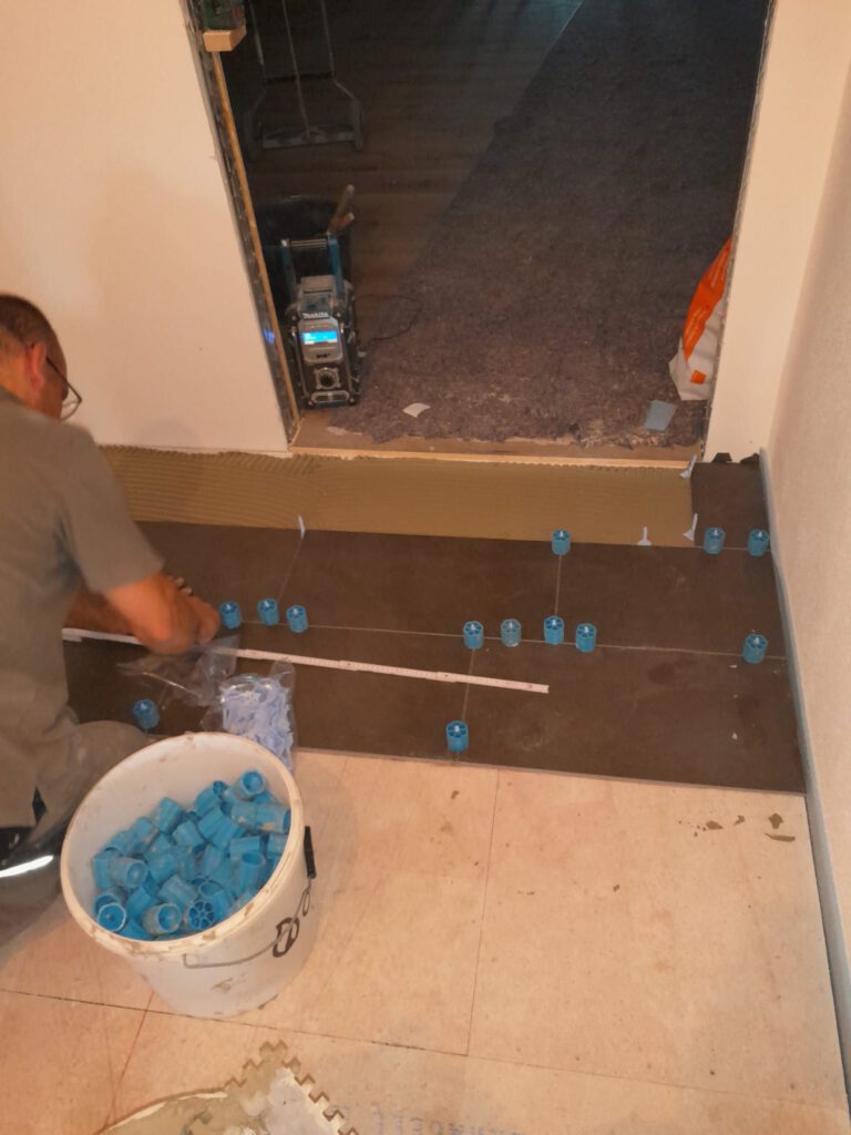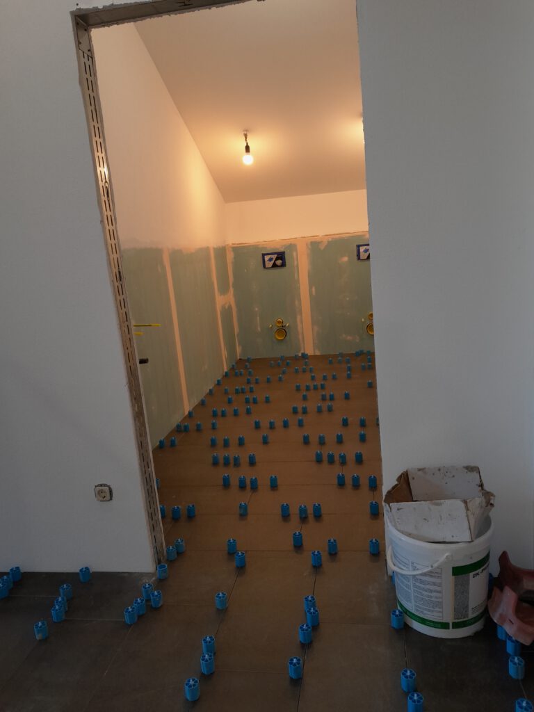 Der Flur wird gefliest und sieht fertig so aus. Jetzt fehlen nur noch die Randfliesen.