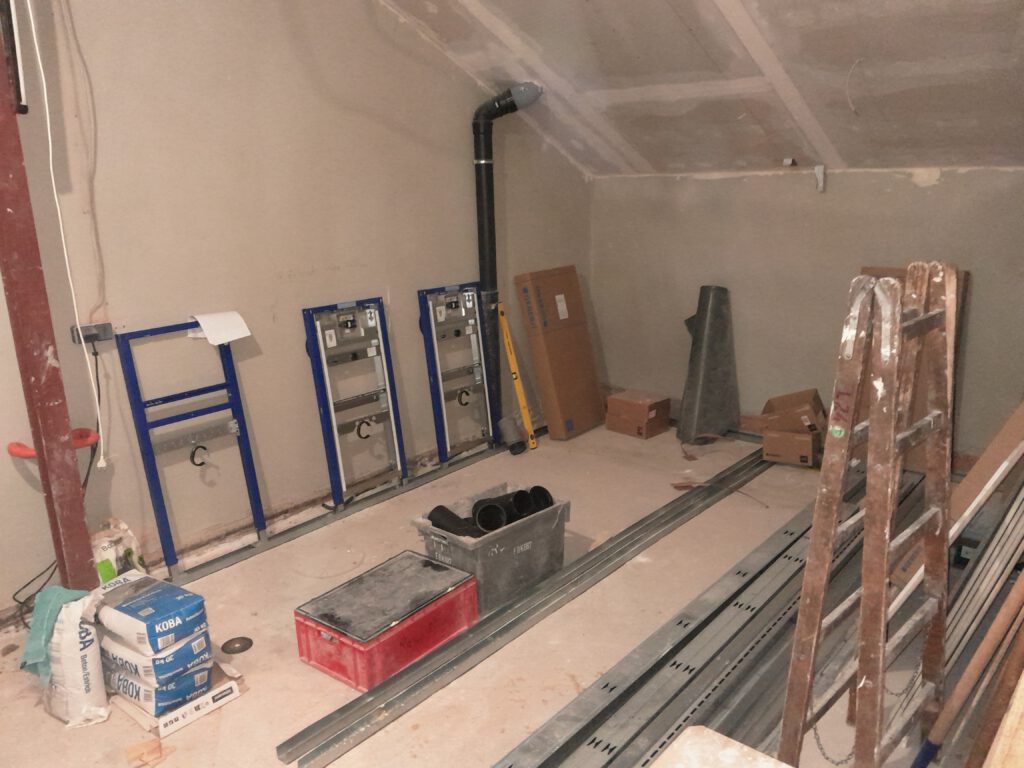 Die Unterkonstruktion für die WC-Wände entsteht