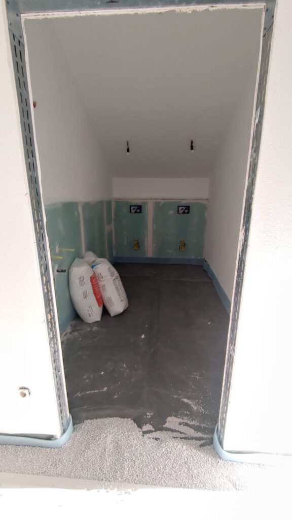 sieht dann nach dem Verkoffern mit speziellen Trockenbauplatten für den Nassbereich so aus.