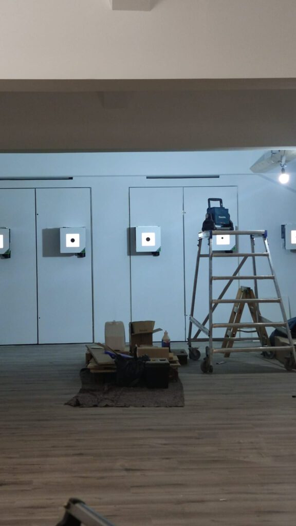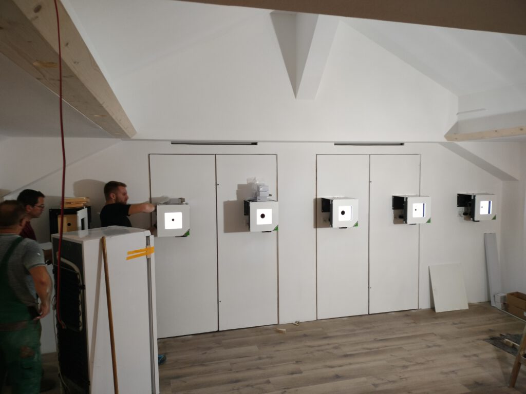Die neuen elektronischen Schießstände werden montiert. Jetzt sieht man schon gut, wie es fertig ausschauen wird.