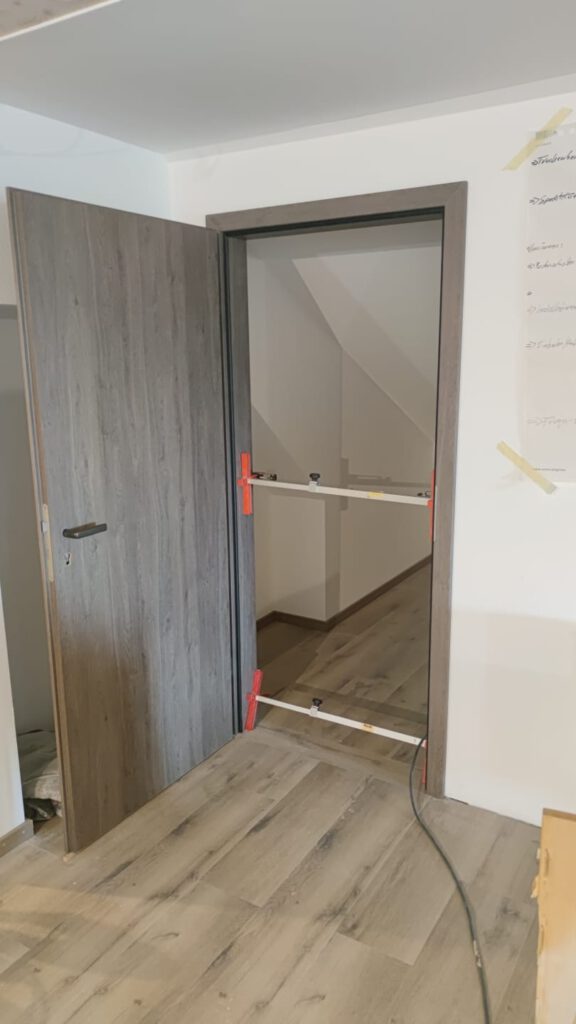 die Türen an der Fensterfront wurden mit Eckschutzschienen versehen und anschließend gleich beplankt: