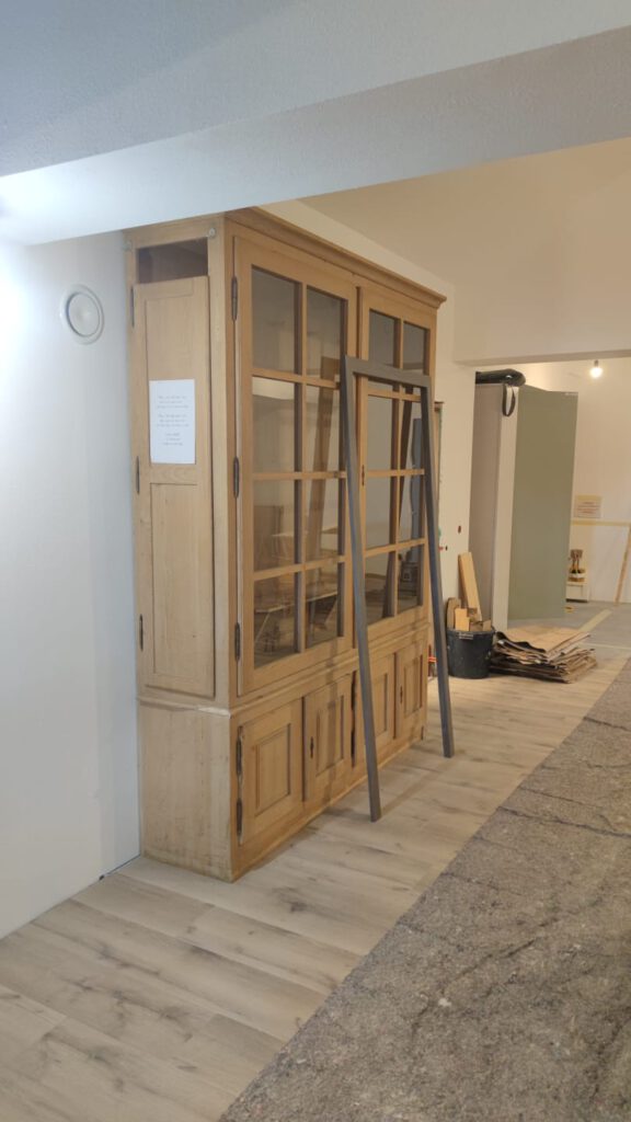 Der Gewehrschrank steht an seinem neuen Platz! Jetzt müssen nur noch die Schubladen und die Tischplatte montiert werden.